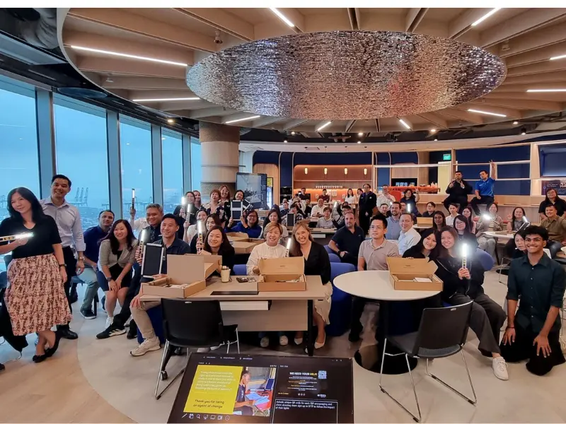 The StudentBuddy PowerUP is a hands-on team experience where participants assemble solar power units that provide lighting and charging for families living in energy poverty.